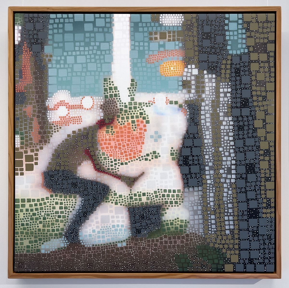CARROT, NOT STICK by The Ellenbogens (2024, Giclée Print and Acrylic on Canvas; 36" x 36"; unique, 1-of-a-kind). It is part of the Eg.Collaboration series between husband and wife artist team Carolina and Michael Ellenbogen. This particular piece brings together Michael's "Color Field Photography" seris and Carolina's WHEN THE LIGHT BREAKS INTO PIECES series.